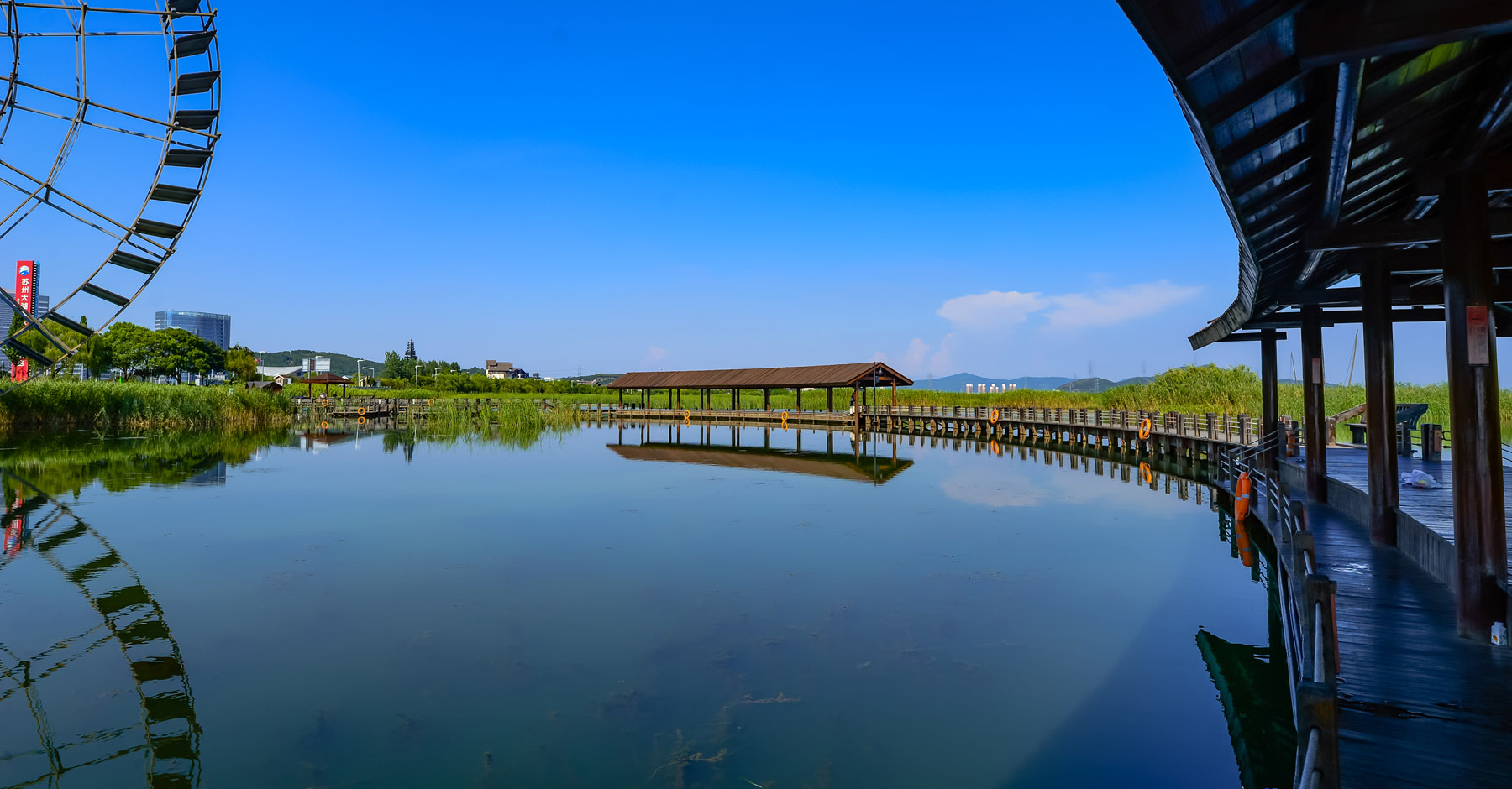 太湖国家湿地公园 东起环太湖大道度假区东入口,西至太湖新天地,全长2公里。园区共分湿地生态保育区、科普教育区、湿地生态休闲体验区、综合服务区等四个区域,是一个集水生植物观赏、生态湿地景观、候鸟栖息、栈道漫游等游览功能及科普生态展示的国家级湖滨型湿地公园。苏州太湖公园主要有“栈桥探幽”、“芦荡迷宫”、“悠然双亭”、“风车谍影”、“八仙过海”、“鸥鹭栖归”、“渔舟唱晚”、“落日听涛”等八景组成,是忘却城巿喧嚣、世俗纷扰,亲近太湖山水、体验自然野趣、感受吴地风情的佳绝处。 |