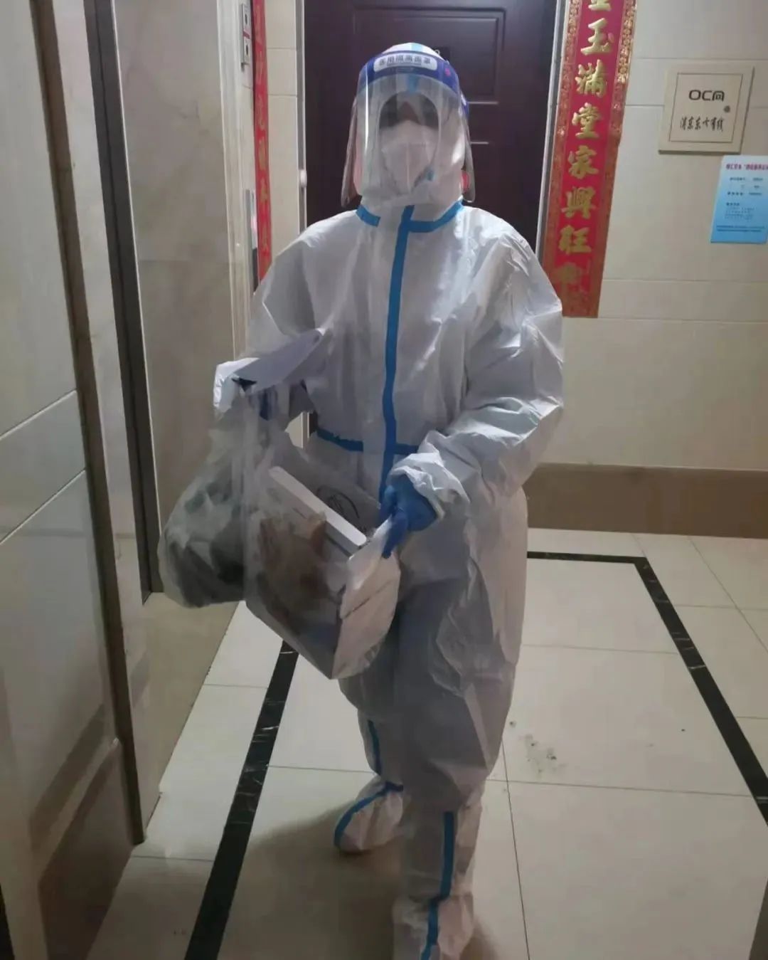 自上海疫情爆发以来,她积极报名社区党员志愿者,担任“扫楼员”和“搬运工”的角色,“穿着大白爬上爬下发抗原,一栋楼下来里面的衣服都湿透了,也更加理解了医护和基层工作者的艰苦。但是看到居民们收到物资后‘安全感’满满的笑容,我也觉得很有收获感,感觉再辛苦也值得!”